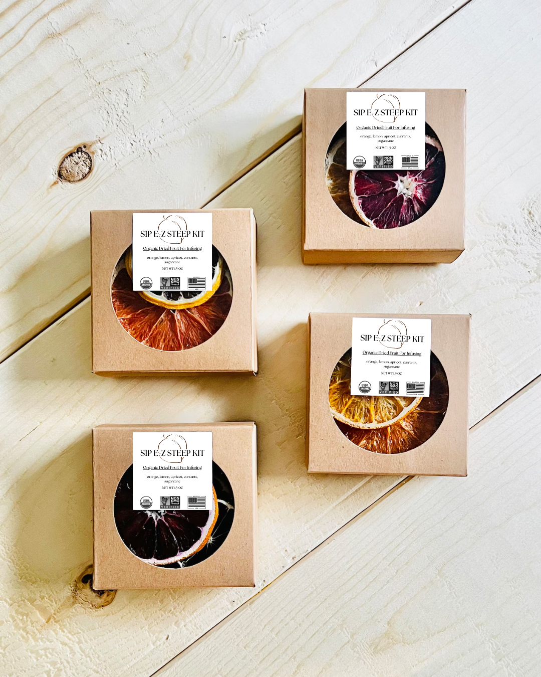 Sip, Steep, Savor – Delicious Infusions Await. Experience the pure essence of fruit in every sip. Introducing the Sip E-Z Steep Kit—a delicious, all-natural way to infuse your water with real fruit flavors. Made entirely from dried fruit, our Steep Kit works just like tea—simply pour into a cup, add boiling water, and let the flavors bloom. No artificial ingredients—just pure, vibrant taste in every sip. Certified organic ingredients from california farms.